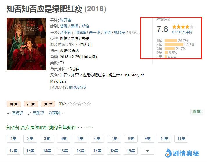 随着国产影视行业的不断发展,电视剧几乎可以说是层出不穷,以往剧荒的时代已经逐渐消失。但是层出不穷的电视剧也反映了一个问题,良心剧慢慢的少了,如今的电视剧几乎都是依靠流量明星,或者著名小说翻拍,毫无创新,更别说吸引观众眼球了。《知否》就是这样的一部剧,随着热播后,人物演员陆续登场,剧情的一步步推进之后,该剧也从豆瓣开画八点几跌至了如今七点六,收视率是上去了,但是口碑上确逐渐走下坡路了。
