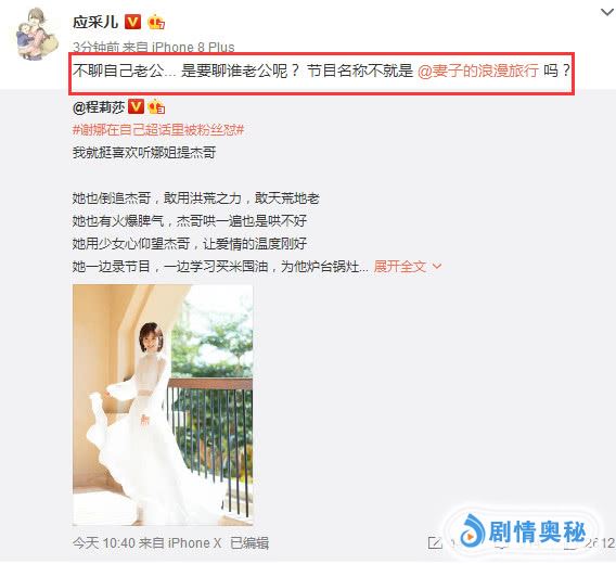 应采儿发文打抱不平:不聊自己老公……是要聊谁老公呢?节目名称不就是妻子的浪漫旅行吗?