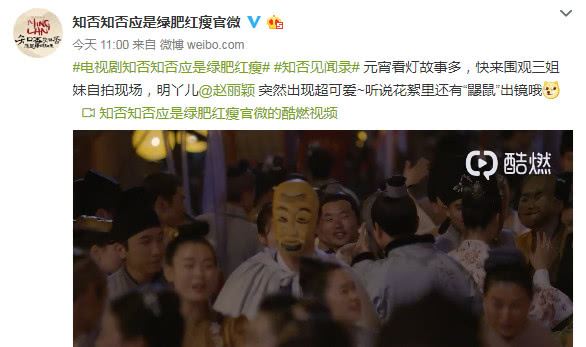 1月14日,《知否知否应是绿肥红瘦》官博更新一则花絮视频!“元宵看灯故事多,快来围观三姐妹自拍现场,明丫儿突然出现超级可爱......”