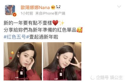 欧阳娜娜今年刚刚成年虚岁十九岁。为给某品牌打广告特意献上了自己的两张自拍。