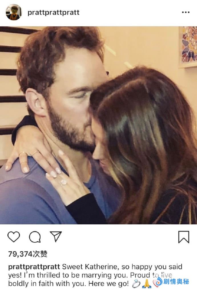“星爵”克里斯·帕拉特在ins发文宣布,已经向凯瑟琳求婚成功,并称“很骄傲能无畏并心怀信念与你一起生活”。