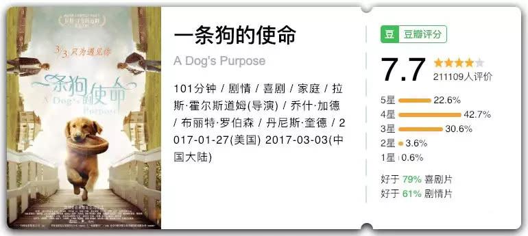 2017年初,一部没有任何大明星加持的狗狗电影《一条狗的使命》在国内获得超过6亿的票房。