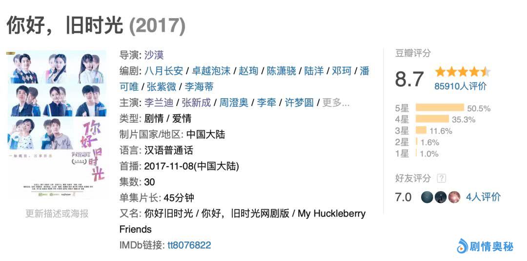 而在国产剧里,《你好,旧时光》《最好的我们》评价可以说是好得非常惊人了。
