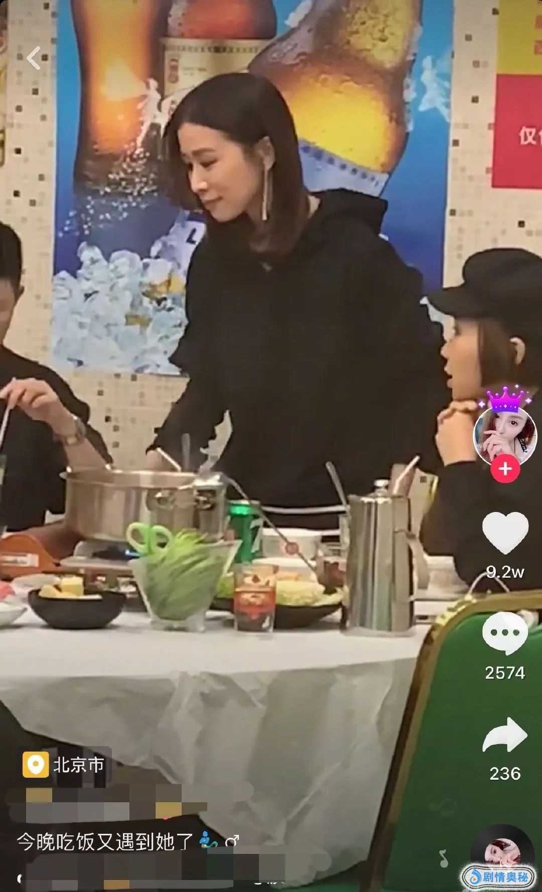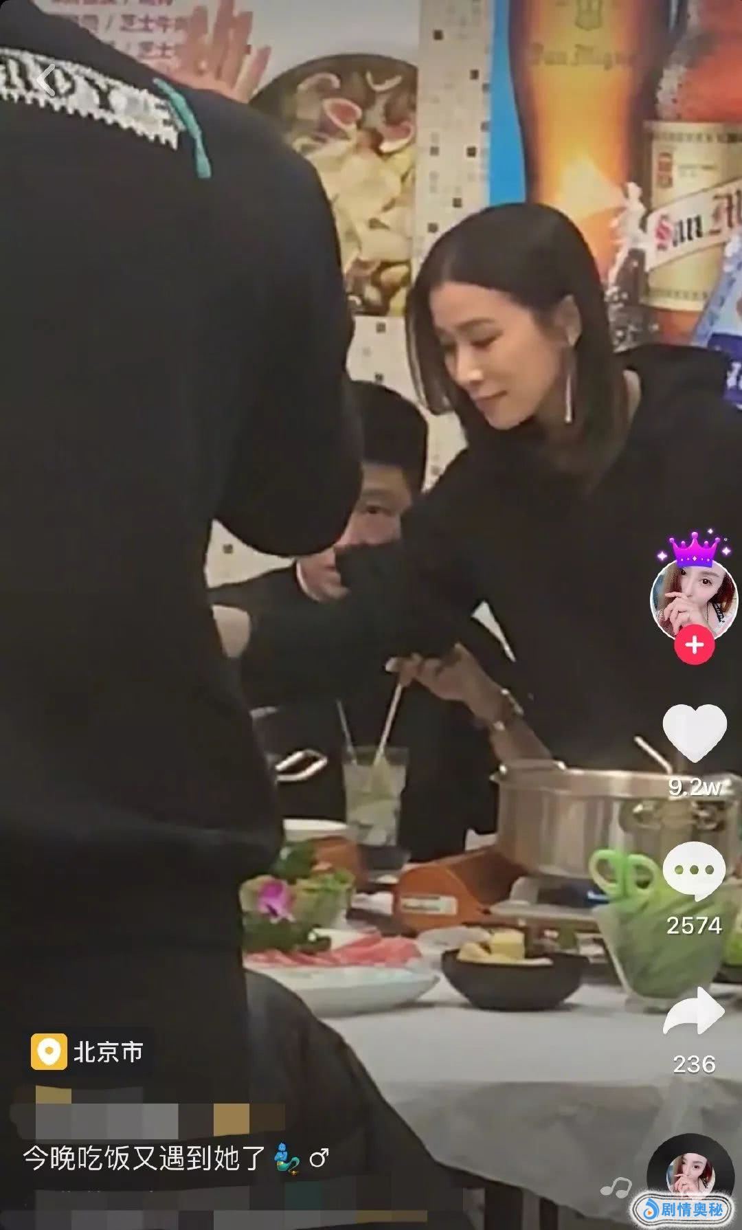 佘诗曼和朋友去火锅店吃饭,网红店主发现后,拉着她一起拍视频。