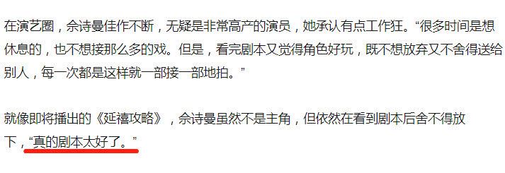 其实【小揪揪】这个事更像是个朋友间的玩笑,真正吸引佘诗曼的原因,还是【剧本好】。