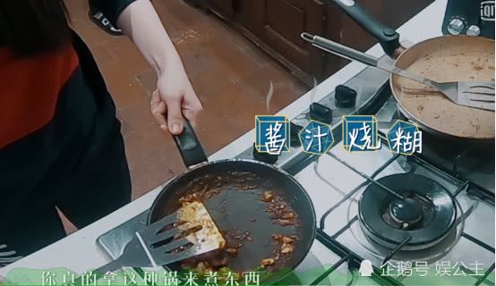 欧阳娜娜是真的没有做过饭,能够弄熟就不错了!但这个酱也被她给炒糊了。