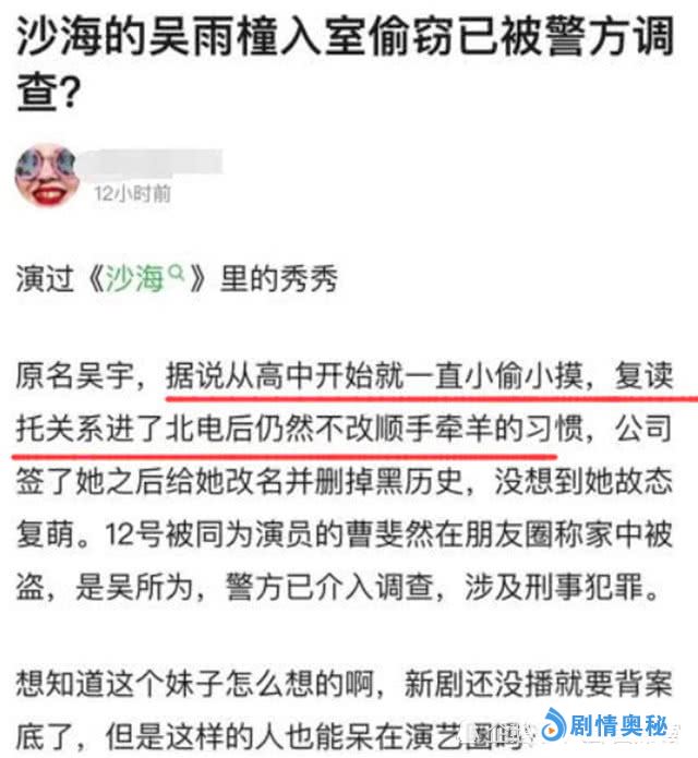 据了解,当时这个事情的当事人是近期刚刚热播电视《沙海》中,一个很受观众喜欢的小女生,她叫做吴雨橦,可能大家还是不太清楚,其实她就是一个新人,在一八年刚从学校毕业的,虽然之前因为毕业照的事情也在网上火过,但是这一次真的是完全“出名”了。