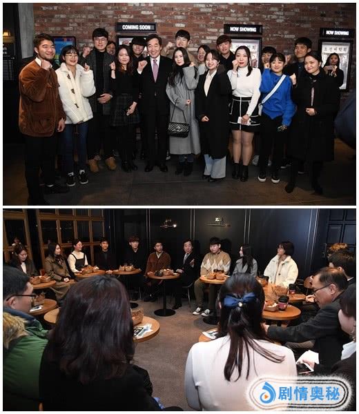 17日下午,韩国总理李洛渊在首尔龙山CGV Ipark Mall与韩语团体“韩语梦”一起观看了电影《词典》。