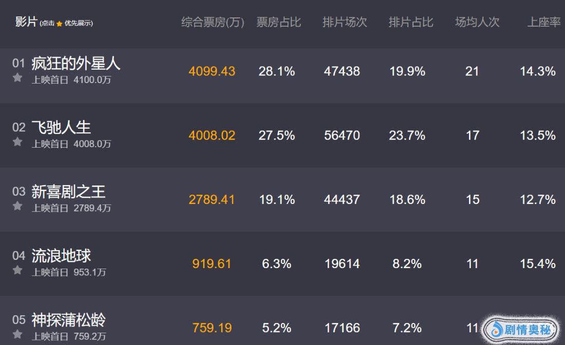 真正有实力夺取春节档票房冠军的无疑是《疯狂的外星人》《飞驰人生》《新喜剧之王》《流浪地球》四部大片