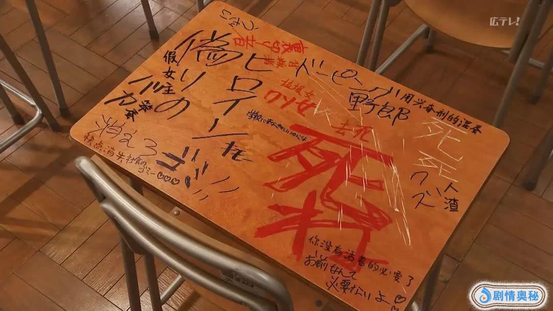 同学们根本不管流言是真是假,就开始排挤澪奈,把她当成空气,在她桌上写满肮脏的字眼,把她的鞋子丢进厕所里…