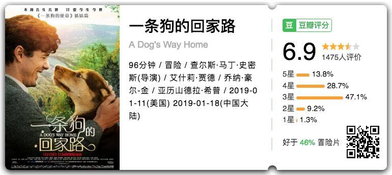 上映两天,《一条狗的回家路》票房相当平淡,还不到千万,豆瓣仅有1475人评价,评分6.9分,想超过《使命》现象级的6.06亿票房,几乎毫无希望。