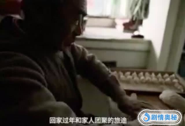 老人包饺子时,背景电视新闻正好采访回家的人,寄托回家之情的时候想落泪;