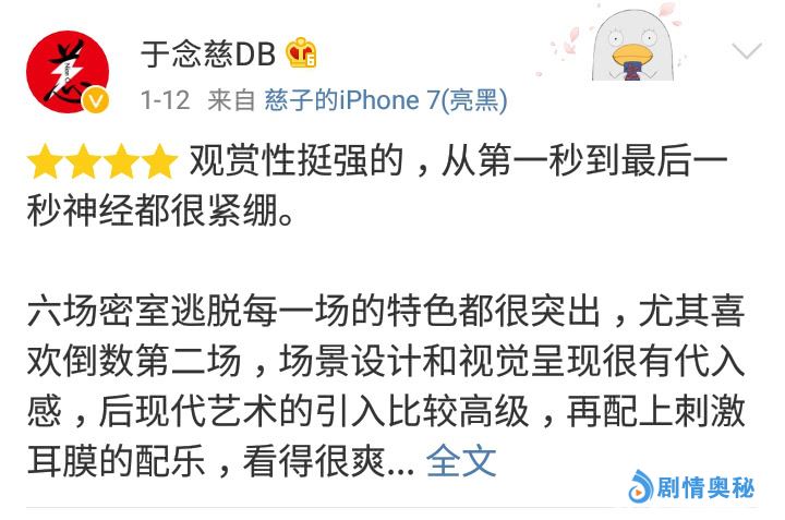 该片在每个密室的设计上也都非常精妙且极富创意,从表面上看“烈焰密室”的热、“寒冰密室”的冷、“颠倒密室”的险、“病房密室”的诡等等都惊险刺激让人目不暇接。仔细推敲会发现每个密室都和玩家的经历紧密相关,比如精英杰森曾在极度低温下幸存,而高温火光又正是退伍女兵阿曼达的痛点,可见电影在剧本的设置上非常严谨,密室内外各种线索铺陈也让该片的逻辑性领先同类型电影。