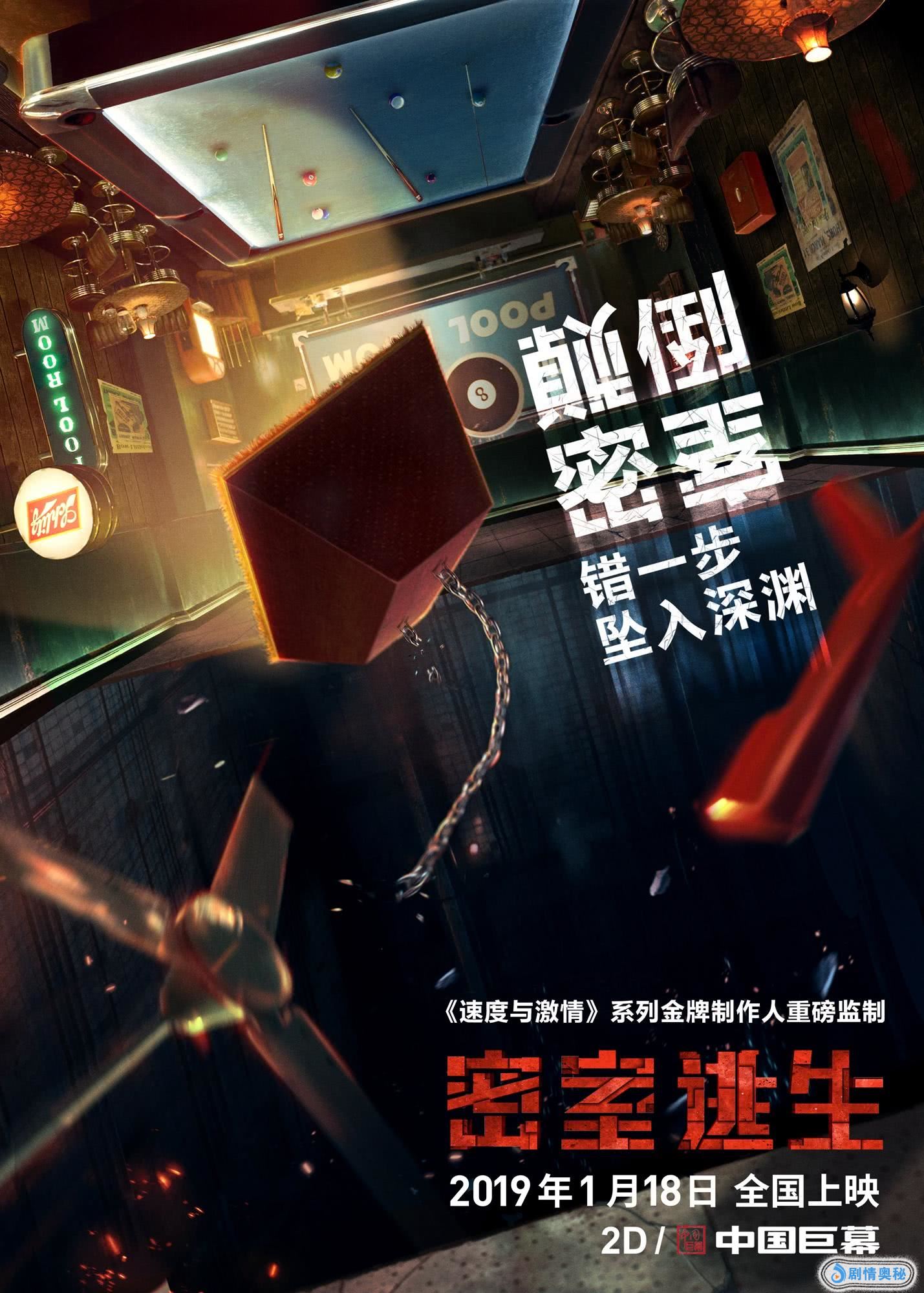 《密室逃生》的故事建立在当下流行的密室逃脱游戏上,六个陌生人受邀参加这场游戏,谁知道等待他们的竟然是一场关乎生死的重大危机。片中设置第一个成功逃出的玩家将获得一万美元的奖金,这个不高的金额恰恰可以让参与者放下戒心参与其中。