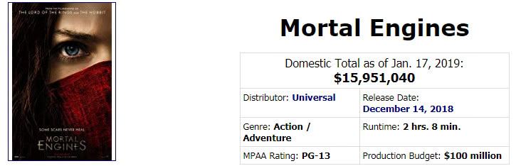 据媒体报道,《掠食城市》制作成本高达1亿美金(约合6.9亿人民币),放眼好莱坞这样的大制作也是凤毛麟角,与此前票房大爆的《毒液》成本相当,而且特效相比的《毒液》更加宏大和炫酷!