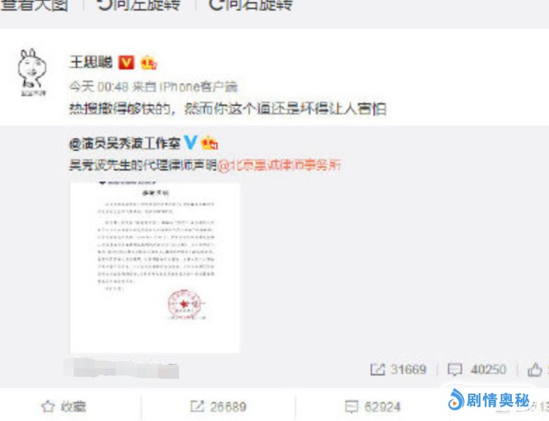 第二条说的是这吴秀波你这B可真够坏的,这些话也只有王思聪手说的出口了,别人还真的是不敢去说啊,而第三条还是diss吴秀波,说“热搜撤的够快的,这逼还真的厉害了”。