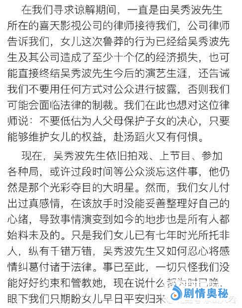 面对陈昱霖父母的爆料,吴秀波方回应称“不属实”,甚至连吴秀波的妻子何震亚都发声明,称报警是“忍无可忍”。