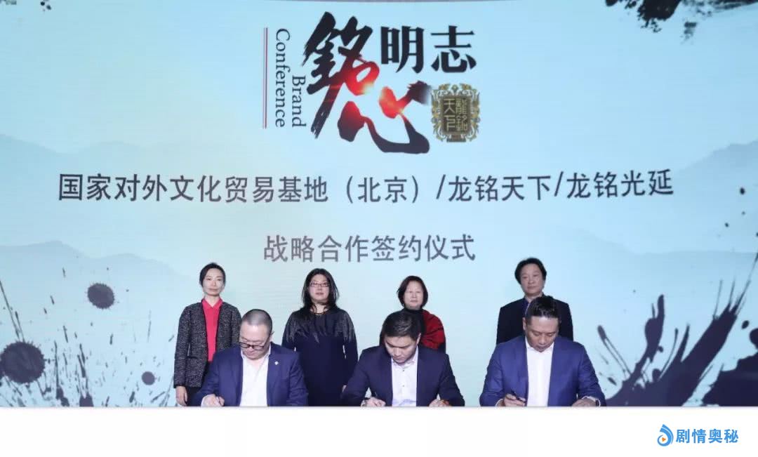 当天还举行了龙铭天下与国家外文化贸易基地(北京)、掌阅影业、中智文化、紫薇星河等众多合作伙伴的战略合作签约仪式。