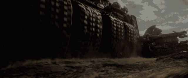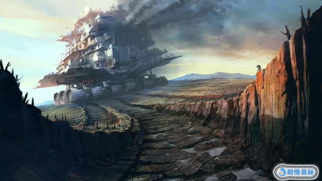 但最恐怖的发明还是在陆地上。有人制造出了由大齿轮、武器和蒸气引擎组成的移动建筑——牵引城市。
