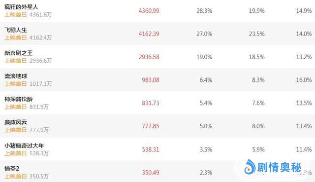 目前《情圣2》首日预售仅有350万,还不如动画片《小猪佩奇过大年》,4.9%的排片也非常低,在《疯狂的外星人》、《新喜剧之王》、《飞驰人生》等一众大片的压制下,几乎毫无还手之力。