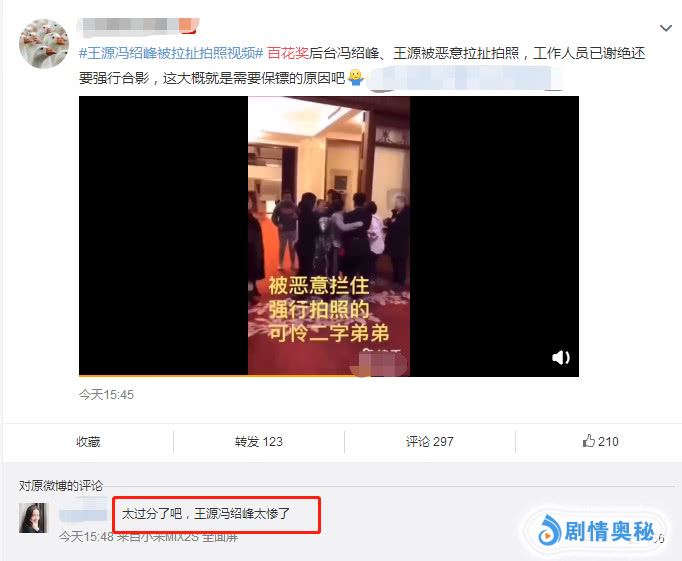 作为明星,确实一举一动都备受瞩目,但这不代表他们就必须对每个人的要求都能一一接受,特别是无理要求更是不在少数。而就在下午16时40分左右,百花奖颁奖后台发生了惊人的一幕,演员王源、冯绍峰被恶意拉扯拍照,一度引发了网友的关注,而与此同时,微博上对于王源冯绍峰被拉扯拍照的视频也一度传开,该话题更是一度上了热搜。
