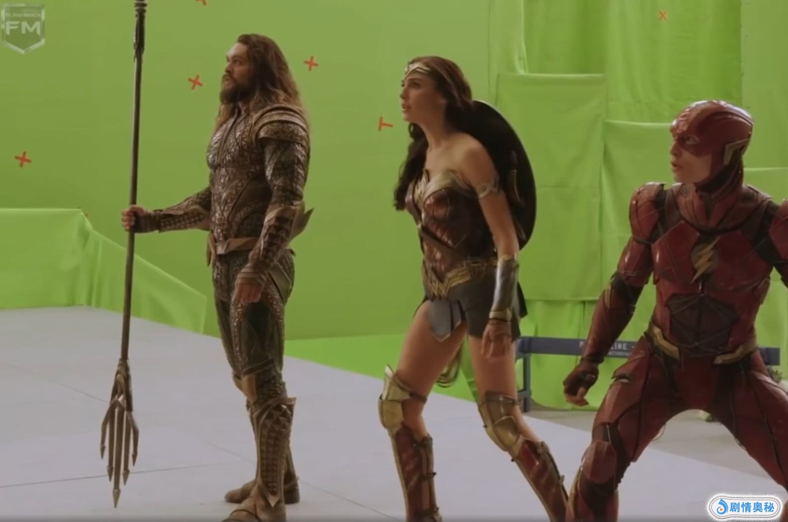特辑中的片段应该是超人复活的一幕,海王全身包裹盔甲,与神奇女侠、闪电侠等站在一起,气场满满。
