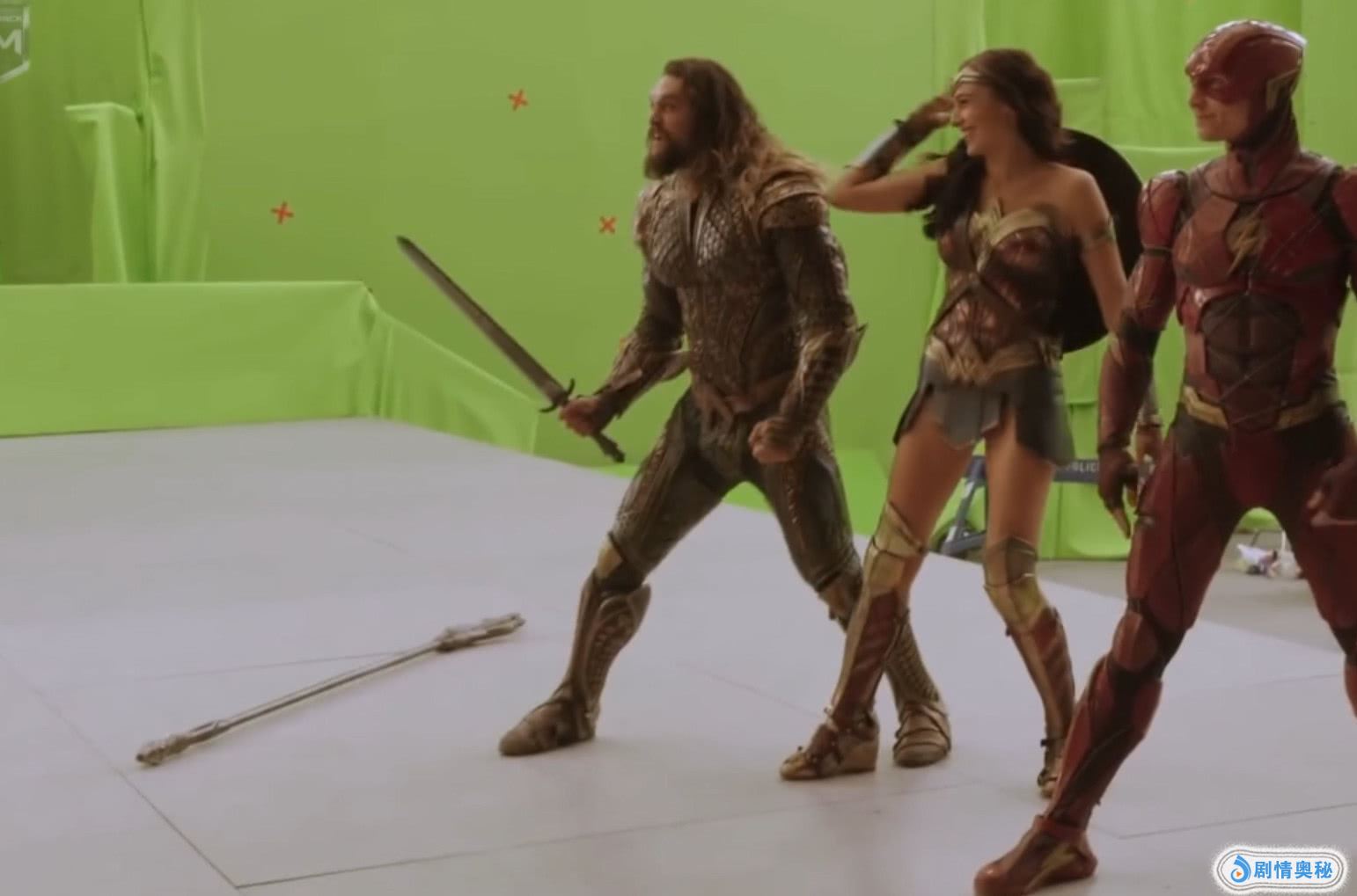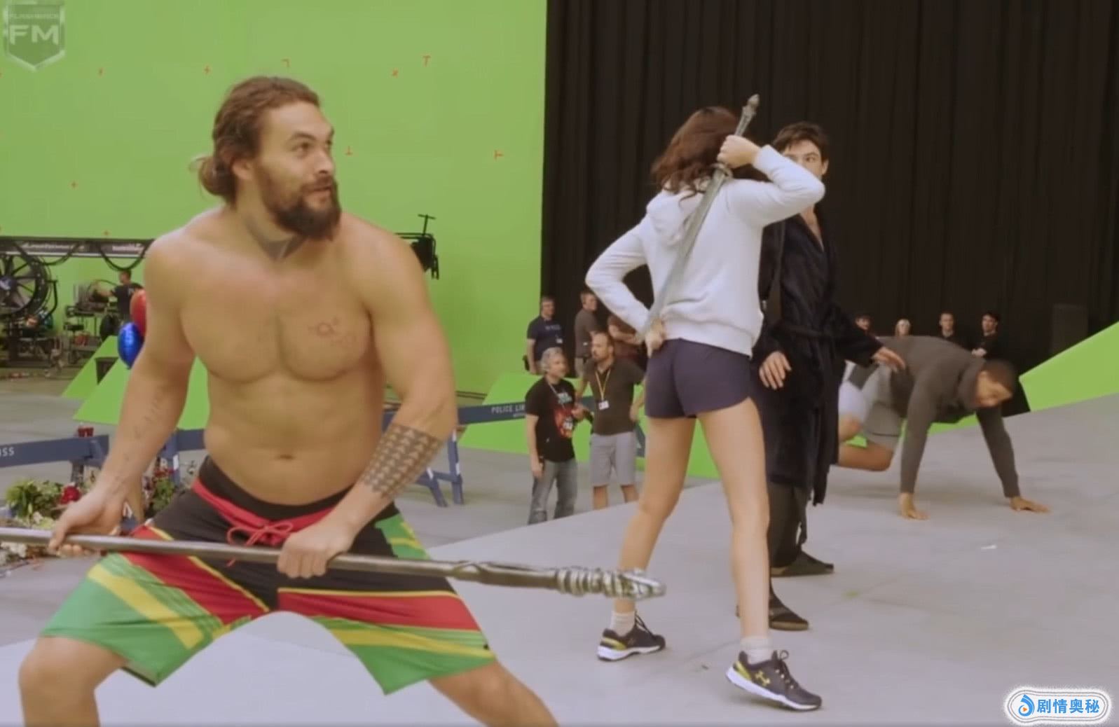 而杰森·莫玛饰演的海王依旧调皮,在拍摄过程中,他的武器掉地上,随手就拔出了神奇女侠背后的长剑。这个动作,一下把女神就逗笑了。
