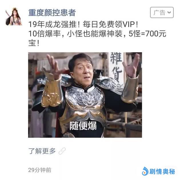 最近,成龙代言的传奇游戏广告,在各大平台疯狂刷屏。