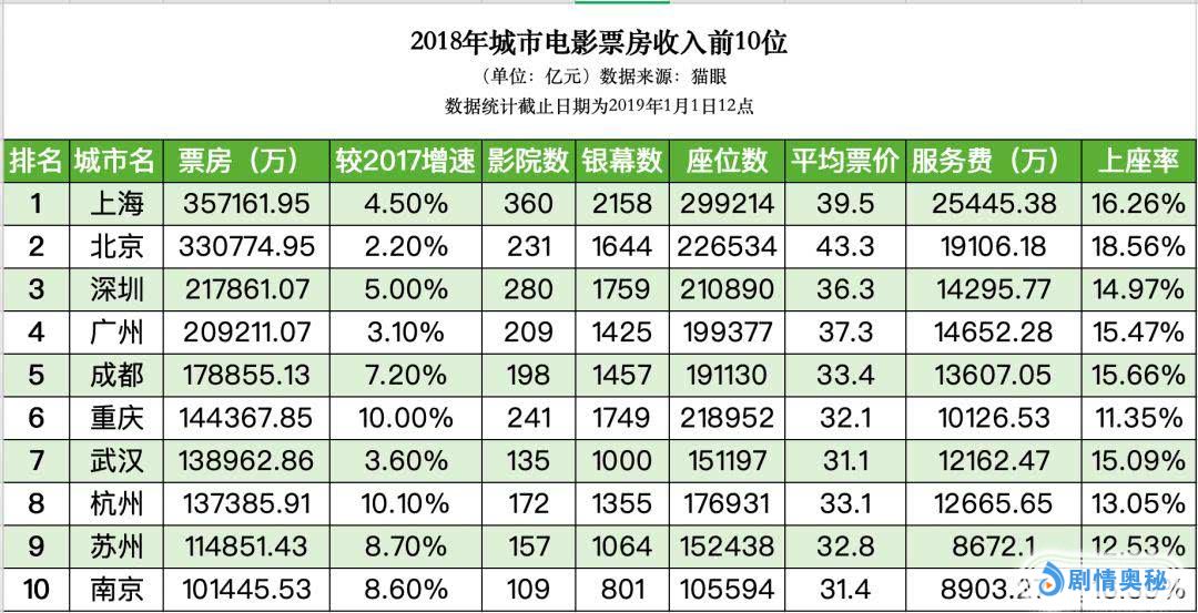 2018年,上海继续蝉联年度全国城市票房冠军,全年票房达35.71亿元,比去年同期增长4.5%。