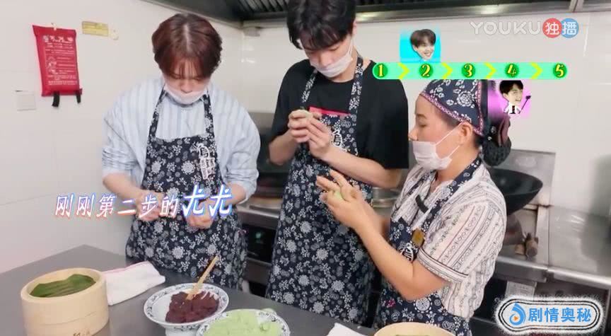 除了感受乌镇的风土人情,嘉宾们还探访了许多传统美食老店,向小吃师傅、当地居民了解美食背后的历史故事,学习制作特色小吃的传统技艺。比如陈立农、尤长靖品尝了明月楼的米线和青团,并来到后厨学习青团的制作方式。