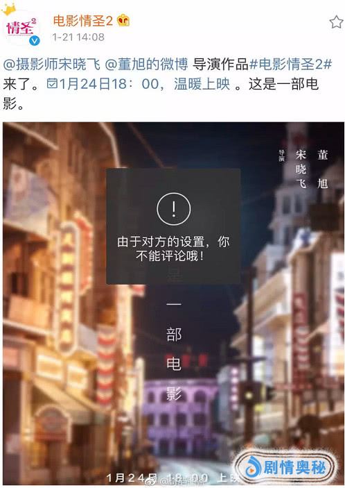 而在网友对于影片能否上映,是否会被撤档等疑问时,该片片方于1月21日下午14时,发布了一张影片提档的宣传海报,宣布该片将于1月24日晚18:00分热映。海报上显而易见的可以看出:这是一部电影,冬日里的温暖。以及定档1月24日18:00的字眼。但同时也可以看得出,该海报中仅有导演宋晓飞、董旭两人名字,其余人物演员名字几乎只字不提。而且片方还一度关闭了留言板块。