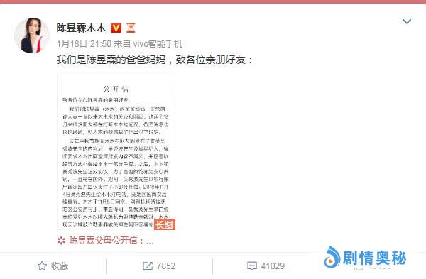 去年中秋节期间,吴秀波与陈昱霖七年地下恋情被曝光后,一度引来了不少吃瓜群众的关注,而后该事件却不了了之。原本正当观众还一味夸赞吴秀波公关工作做得到位之时,于2019年1月18日晚,陈昱霖父母利用陈昱霖微博发布了一则公开信,信中多处提及吴秀波与陈昱霖的种种事件,而且自去年爆料后,陈昱霖还一度被抓入狱,至今父母都无法取得联系。
