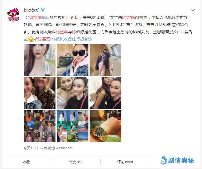 虽然随着时间的推移,有网友爆料出了陈昱霖生活糜烂,乘坐私人飞机,环游世界,以及过度消费奢侈品等多则相关消息,但是这也仅仅是网友爆料,具体相关人士为发出声明证实。而事件发生至今,吴秀波本人至今还未做出相关回应。