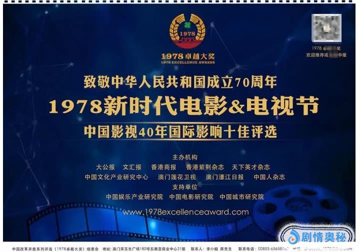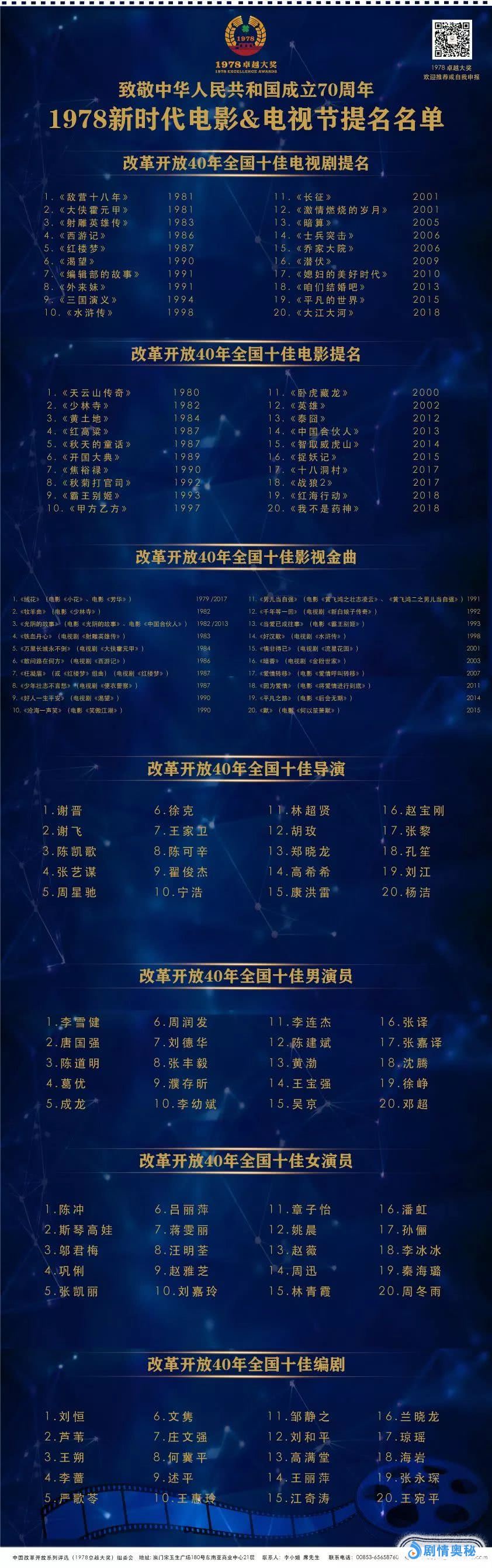 1978新时代电影节&电视节还设置了改革开放40年全国十佳导演、十佳编剧、十佳男演员、十佳女演员等个人奖项,每个奖项都有20位影视人获得提名。