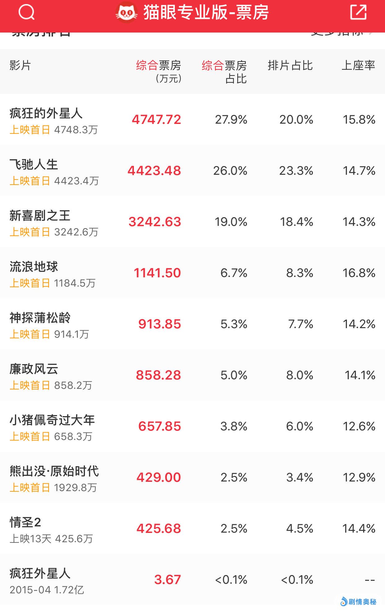根据猫眼专业版数据显示,截止至1月21日15点,《情圣2》首日预售票房为370万人民币,而预售总票房已经达到440万人民币,暂时排在第九位。