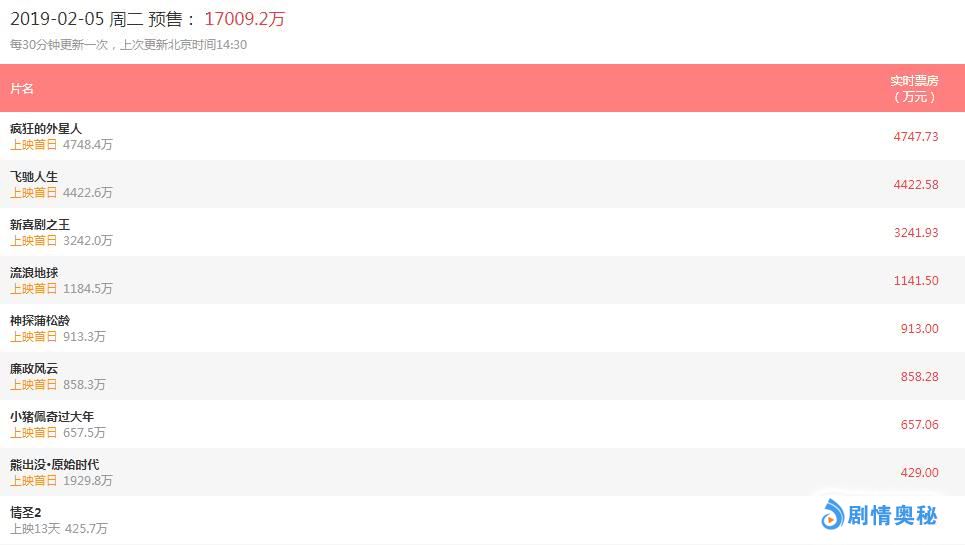不过,《情圣2》的预售票房一直都垫底,至今也只有400多万预售票房而已,排名第一的《疯狂的外星人》已经破4700万了。