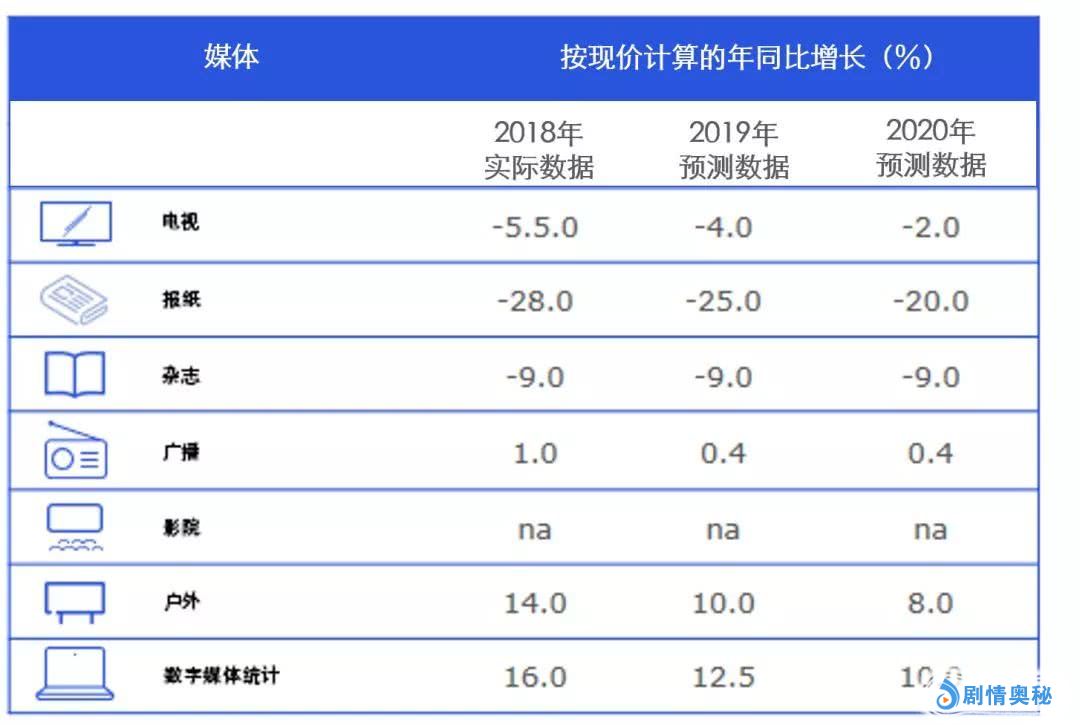 随着关注的焦点转向数字媒体,传统平面媒体广告支出预计将持续保持下滑(2019年,报纸广告支出预计将下滑7.2%,杂志广告支出预计将下滑7.0%)。