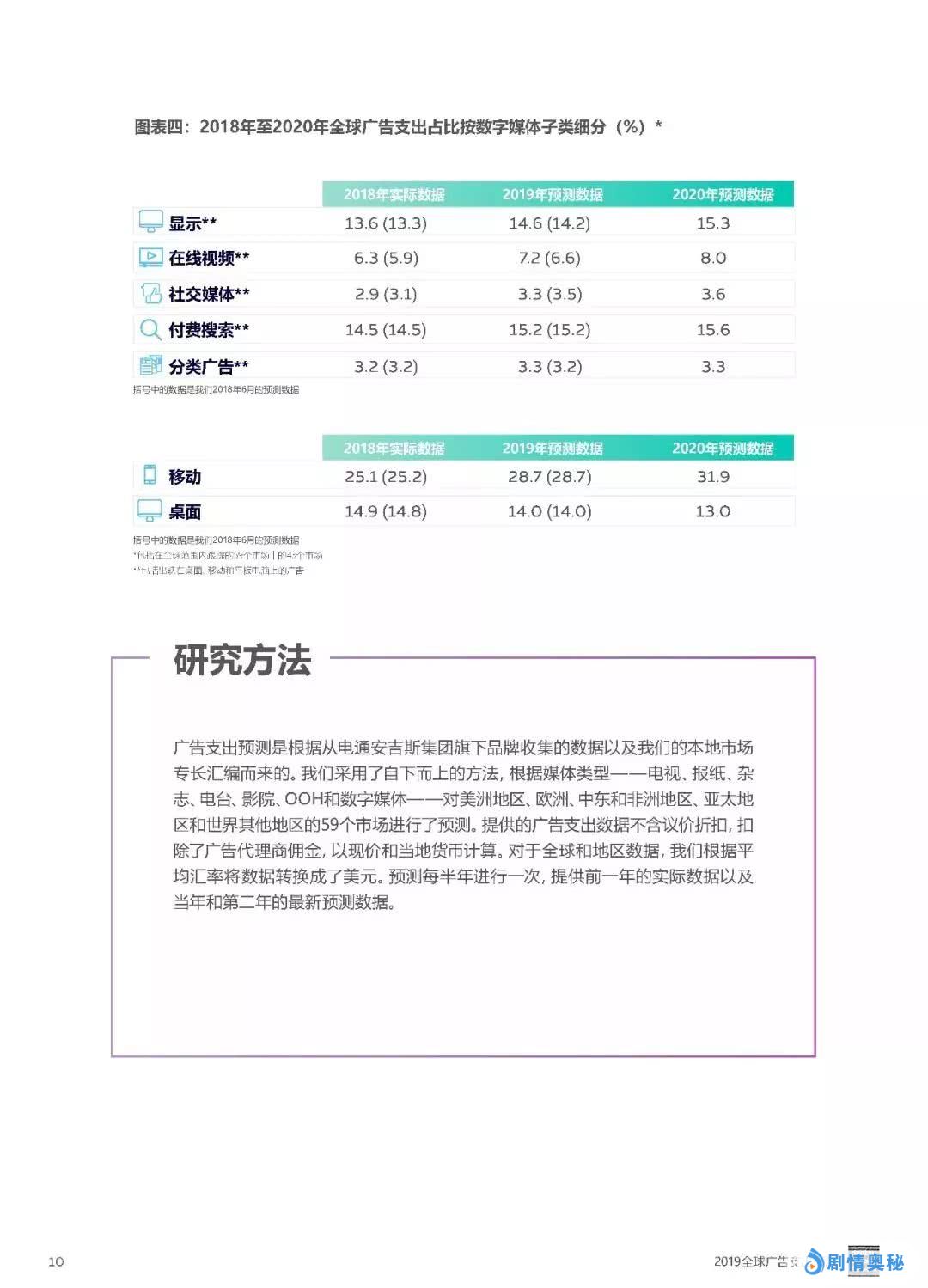 美国:2019年预计增长3.0%,达到2,236亿美元,数字媒体广告支出预计将首次超过电视媒体广告支出。由于缺乏选举或奥运会等重大事件,线性电视广告支出预计将承压,影响广告支出,收视率使得价格承压。随着消费者在移动设备上花费的时间继续增加,在移动广告支出的推动下,数字媒体广告支出预计将继续保持增长(12.3%)。