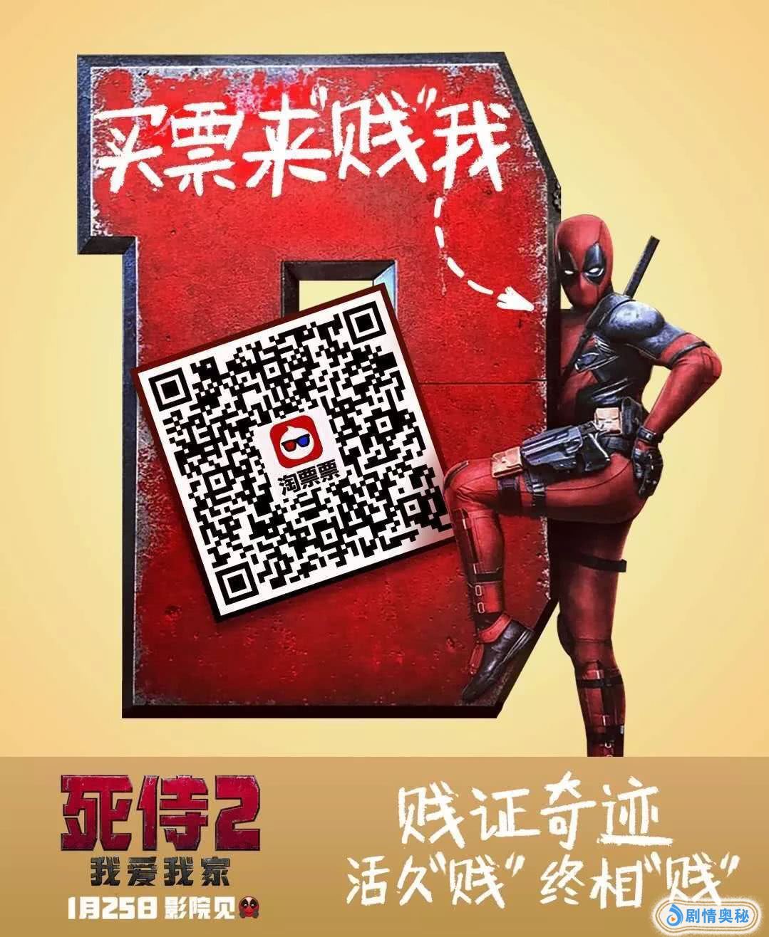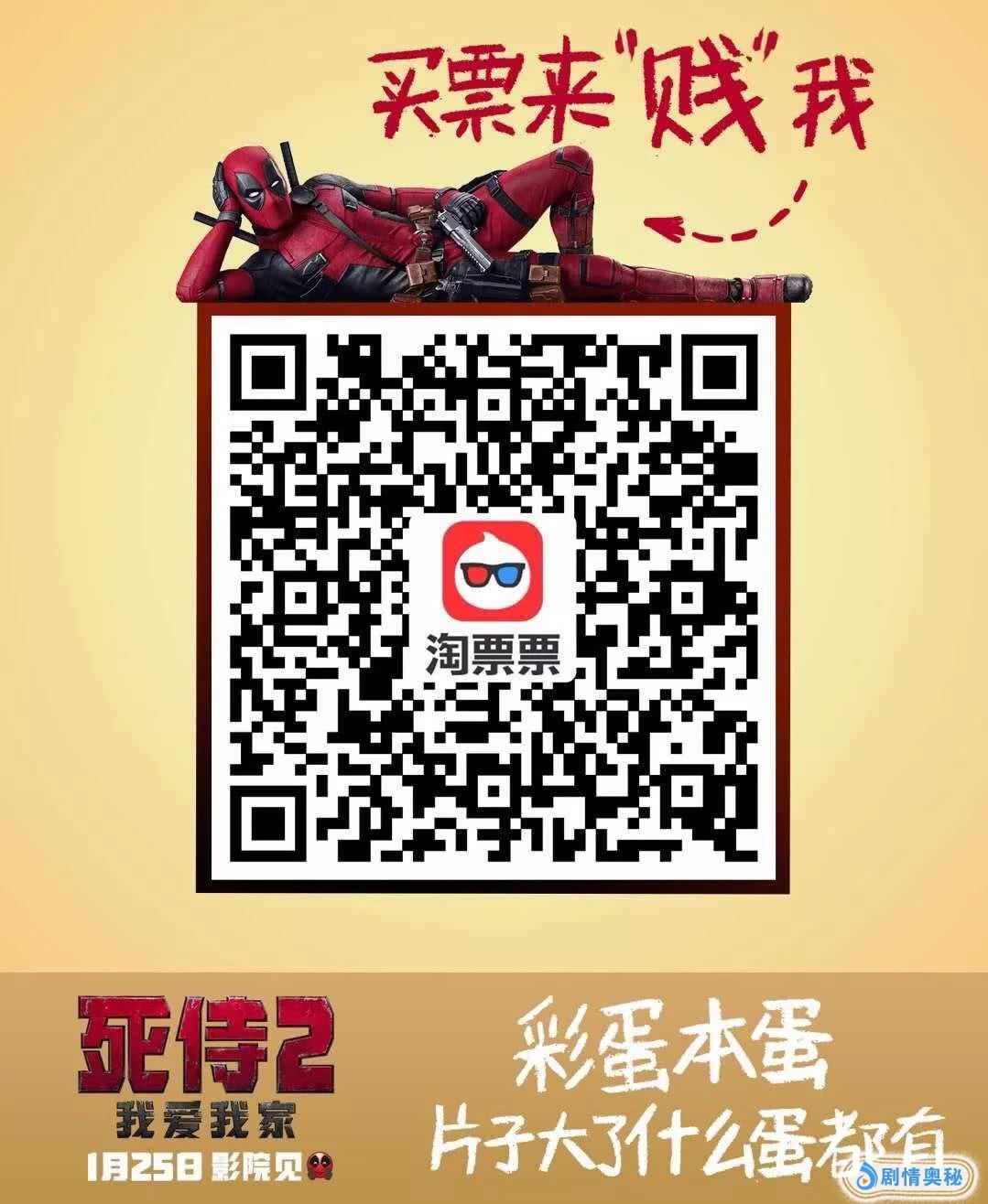 1月25日《死侍2:我爱我家》即将上映,现在扫码购票,就能第一时间与这位能打能耍,毒舌风趣又不走寻常路的超级英雄小贱贱在影院相“贱”啦!