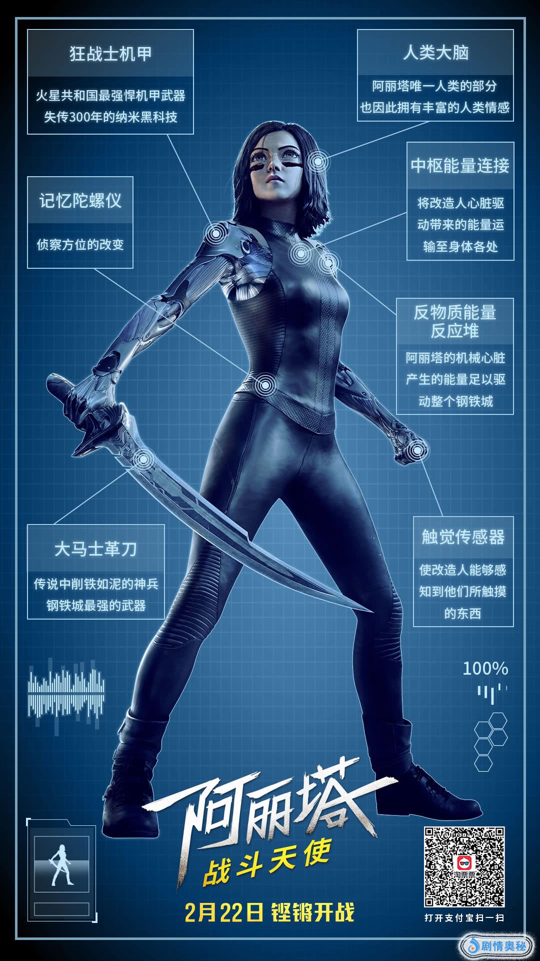 由二十世纪福斯出品,科幻电影大师詹姆斯·卡梅隆编剧及监制、鬼才导演罗伯特·罗德里格兹执导的科幻动作视效巨制《阿丽塔:战斗天使》已正式定档2月22日,春节后首部好莱坞大片即将来袭!顶级视效与极致动作戏,搭配全新世界观与丰满故事线,将一洗假期后遗症带来的不适,以超燃热血来一场从视觉到心灵的全方位洗礼。近日,片方发布阿丽塔装备大百科,全方位解析了这位“战斗天使”所携带的各项黑科技武器,核能少女不仅格斗技巧熟练度满格,搭配这些神装后更是犹如开挂,所向披靡,为影迷呈现一场场前所未见的动作画面。