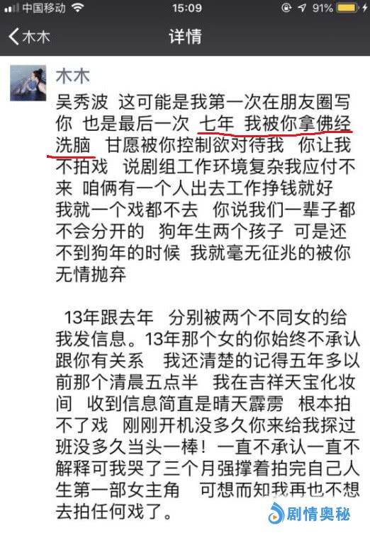 ”吴秀波诱捕陈昱霖“的事情这件事成了娱乐圈日常的谈资,自陈昱霖2018年9月24日在朋友圈曝光后,吴秀波”中年好大叔“的人设是彻底坍塌。陈昱霖此后并没有其他动静,本以为这件事慢慢平静下来,没想到越闹越大。陈昱霖此前在朋友圈称自己是被吴秀波用佛经洗脑,所以后面才会被无情的抛弃。