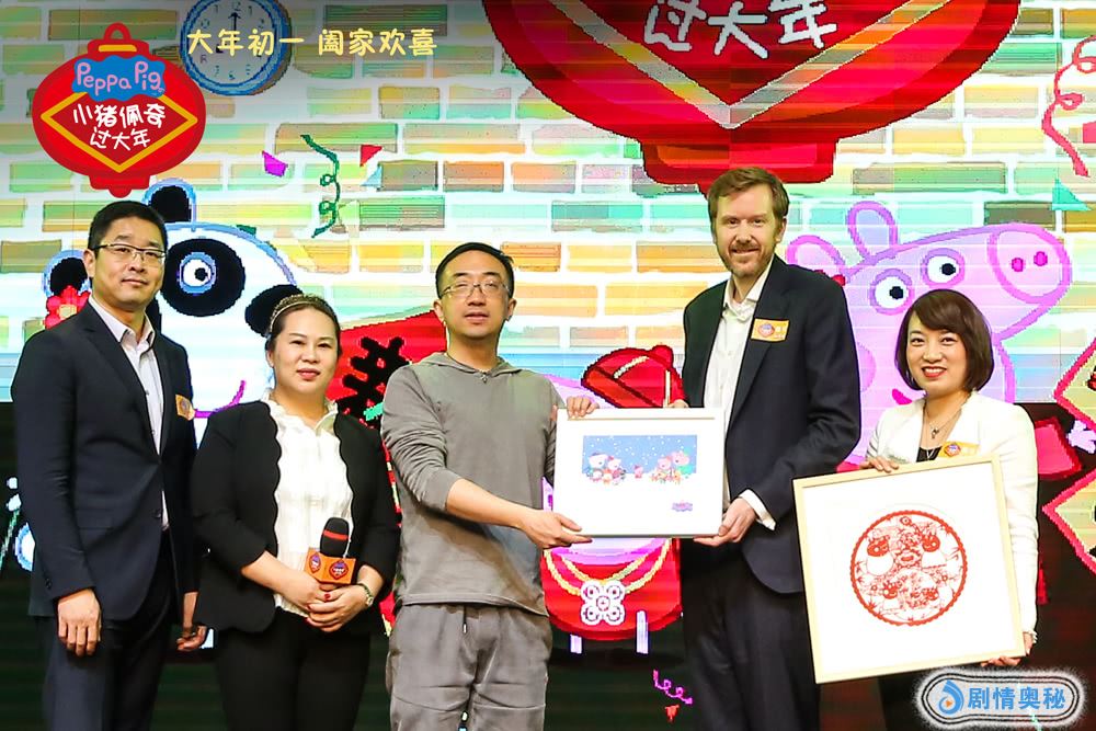 影片中体验了一把传统年味儿的佩奇自然要跟现场的小朋友们分享,于是一场别开生面的“亲子年味秀”拉开帷幕。现场特别邀请了中外两方小朋友共同参与比拼,由萌娃们组成的”佩奇队”、“乔治队”在主演和佩奇的带领下,争先恐后抢答“新衣”、“舞龙”、“挂中国结”等年俗知识。在远方的“爸爸”朱亚文送上派对惊喜——史上最大的新春对联:大年初一阖家欢喜,新春佳节欢乐圆梦。