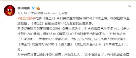 吴秀波主演新年贺岁大剧《情圣2》被提档,女一号获将受影响!,一直以来,吴秀波在圈内都有着“国民老公”的好形象,在演艺这一方面,更是凭借着一张大叔脸,圈粉无数,获得了非常好的口碑,前段时间还曝出其主演的《情圣2》将会在春节期间作为贺岁档电影上映,引来了许多粉丝的期待。本以为可以票房大卖的吴秀波,却在近段时间被一封《公开信》推上了舆论的风口浪尖,导致其一直以来所树立的好男人形象,遭到了许多网友的质疑,随着局势的不断反转,这个事件的结局也实属让人捉摸不透。与此同时,他所主演的春节贺岁电影《情圣2》也在今日被曝出提档,由本来的2月2日提至1月24日,整整提前了12天。
