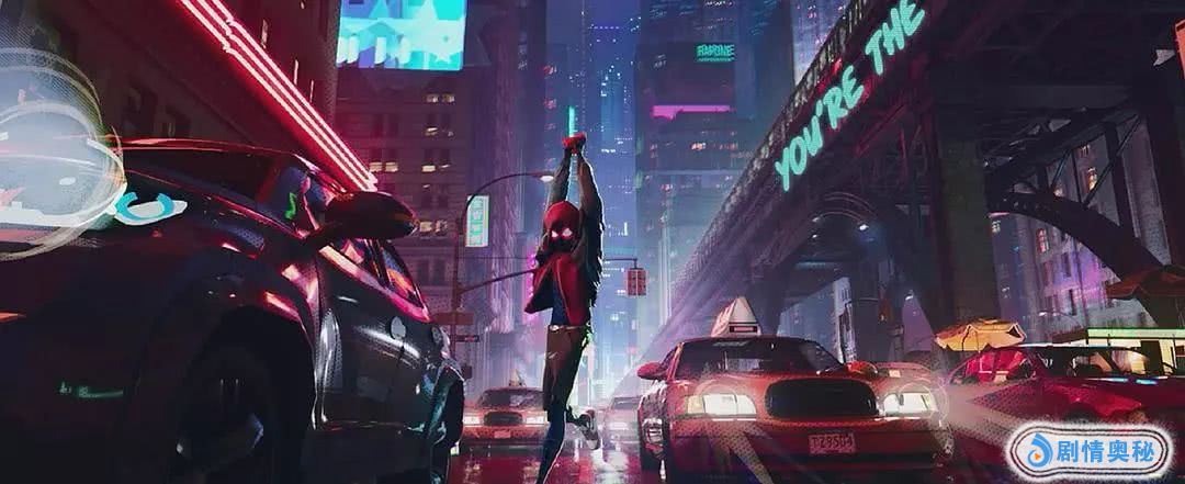 再来就是,蜘蛛侠平行宇宙最引人注目的地方在于,画面的冲击感太强,太绚丽。而且把若干种画风集结到了一起,串成一个动画,而且这多样的画风都事出有因,同时又以故事为核心展开。与故事主题不冲突。