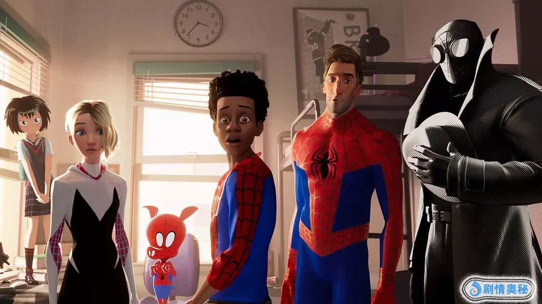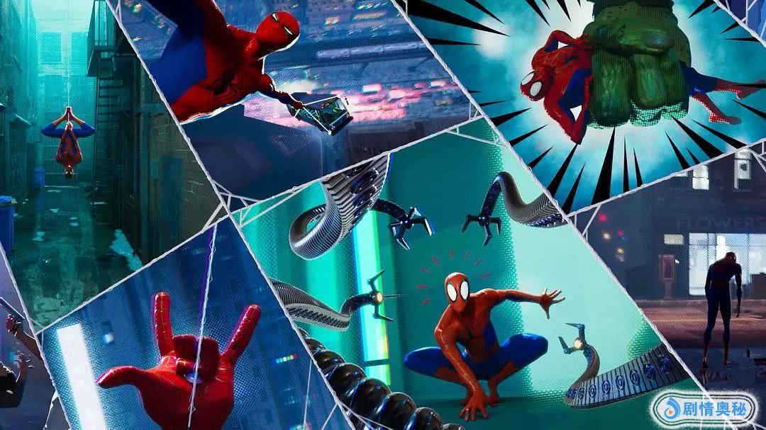 炸裂的视觉效果包裹着好莱坞经典故事的内核。又一个英雄成长的故事,不过这次的蜘蛛侠不是彼得帕克,队友变成了平行宇宙的蜘蛛侠团队。