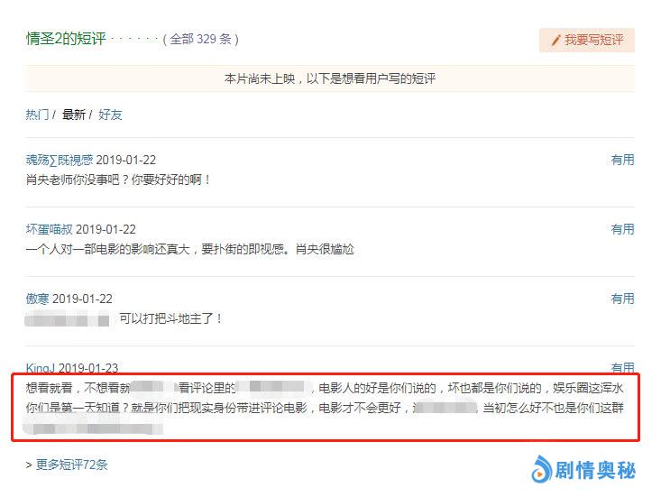 由于受吴秀波事件影响,原本定档2019年2月5日的影片《情圣2》突然提档于1月24日。提档原因相信吃瓜群众都能猜出个八九不离十。除了受到吴秀波事件影响,也有可能迫于遭遇贺岁档多部大片的影响,不得已提档。而对于影片提档消息,影片制作方并未做出更多的答复,而且还关闭了官方微博留言板块。那么对于影片提档,大家是否还会一如既往的去影院支持,还是选择抵制呢?