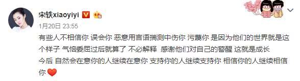 宋轶最后还说:“今后,自然会在意你的人继续在意你,支持你的人继续支持你,相信你的人继续相信你!”