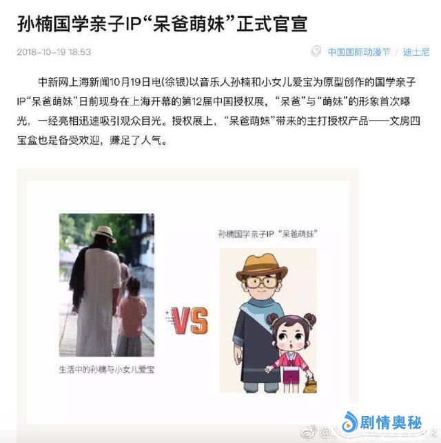 此外,他去年还官宣了以自己和小女儿为原型创作的国学卡通IP“呆爸萌妹”。