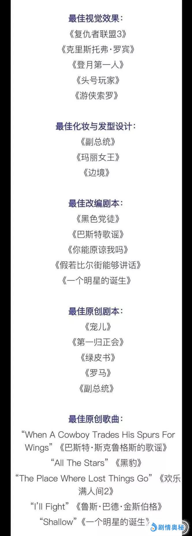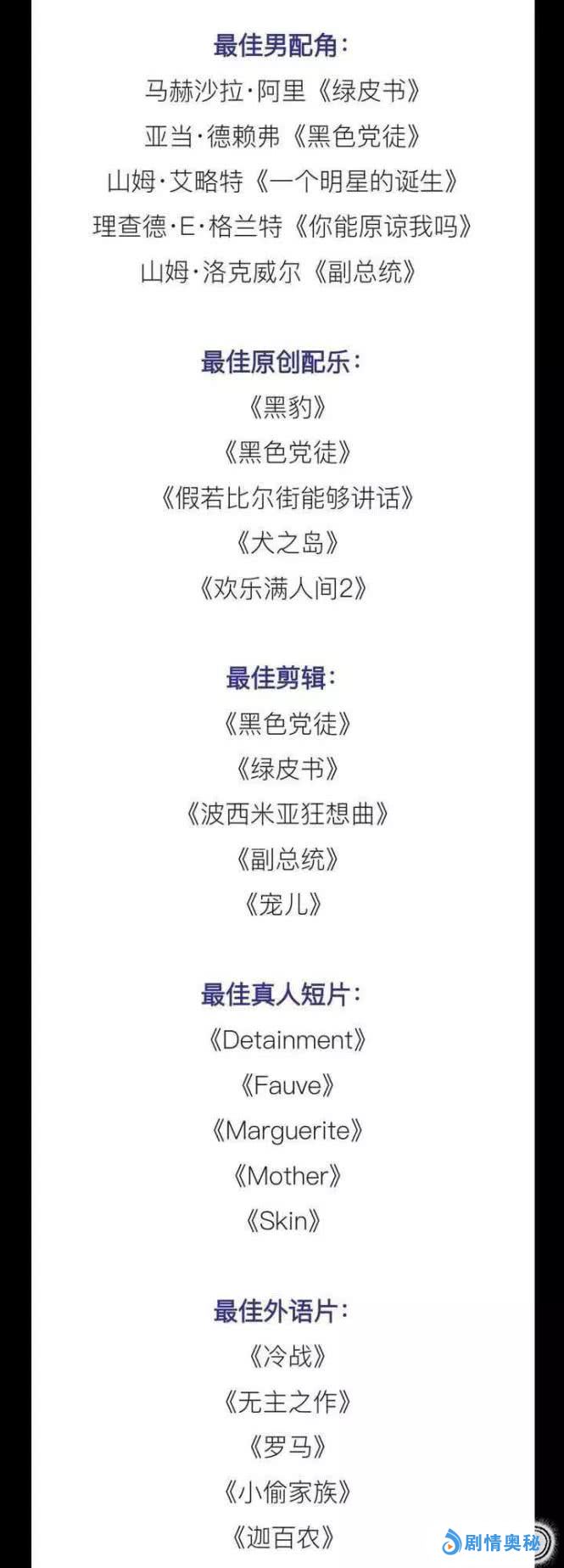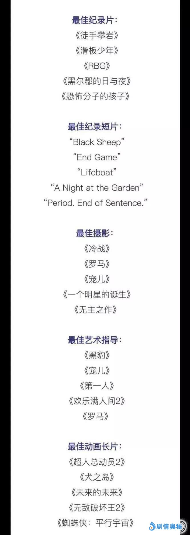 奥斯卡对于全世界的影迷来说都是一场盛大狂欢,1月22日,官方公布第91届奥斯卡提名,本届既有有夺奖热门,也有冷门黑马,就让小编带你一起回顾一下吧!