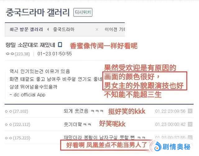 在国内大火了半年之久的香蜜终于在韩国开播了。开播之前,作品已经在平台进行了宣传和造势。网友也是一直很期待。也有少数人已经看过这部剧了。不过因为他们看的是没有翻译的版本。所以他们对剧情的理解。也基本是模糊的。这一次终于有了韩语版的,可以给他们看,也算是他们的愿望终于得偿了。韩国网友在看到这部剧以后的反应,也是让不少人乐坏了。
